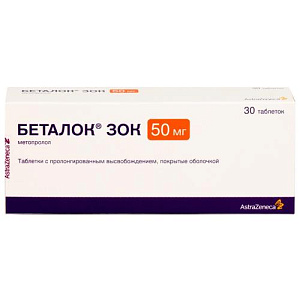 Беталок зок таблетки покрытые оболочкой с пролонгированным высвобождением 50мг №30 блистер