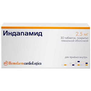 Индапамид таблетки покрытые пленочной оболочкой 2.5мг №30