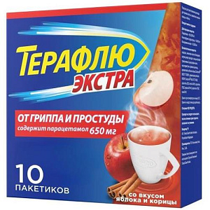 Терафлю от гриппа и простуды экстра порошок для приготовления раствора для приема внутрь 15,021г №10 яблоко + корица