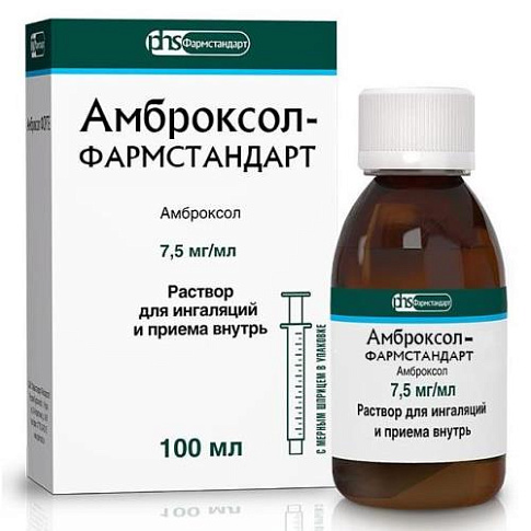 Амброксол-фармстандарт раствор для приема внутрь и ингаляций 7,5мг/мл 100мл /в комплекте с мерным шприцем, адаптером/